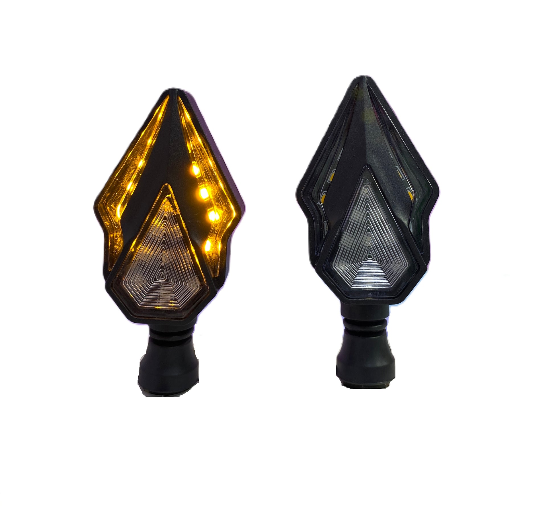 Direccional LED bicolor secuencial para motocicleta, diseñada para ofrecer señalización clara y moderna. Cuenta con doble color para diferenciar funciones y un efecto secuencial fluido que mejora la visibilidad lateral y aporta un acabado estético actualizado.