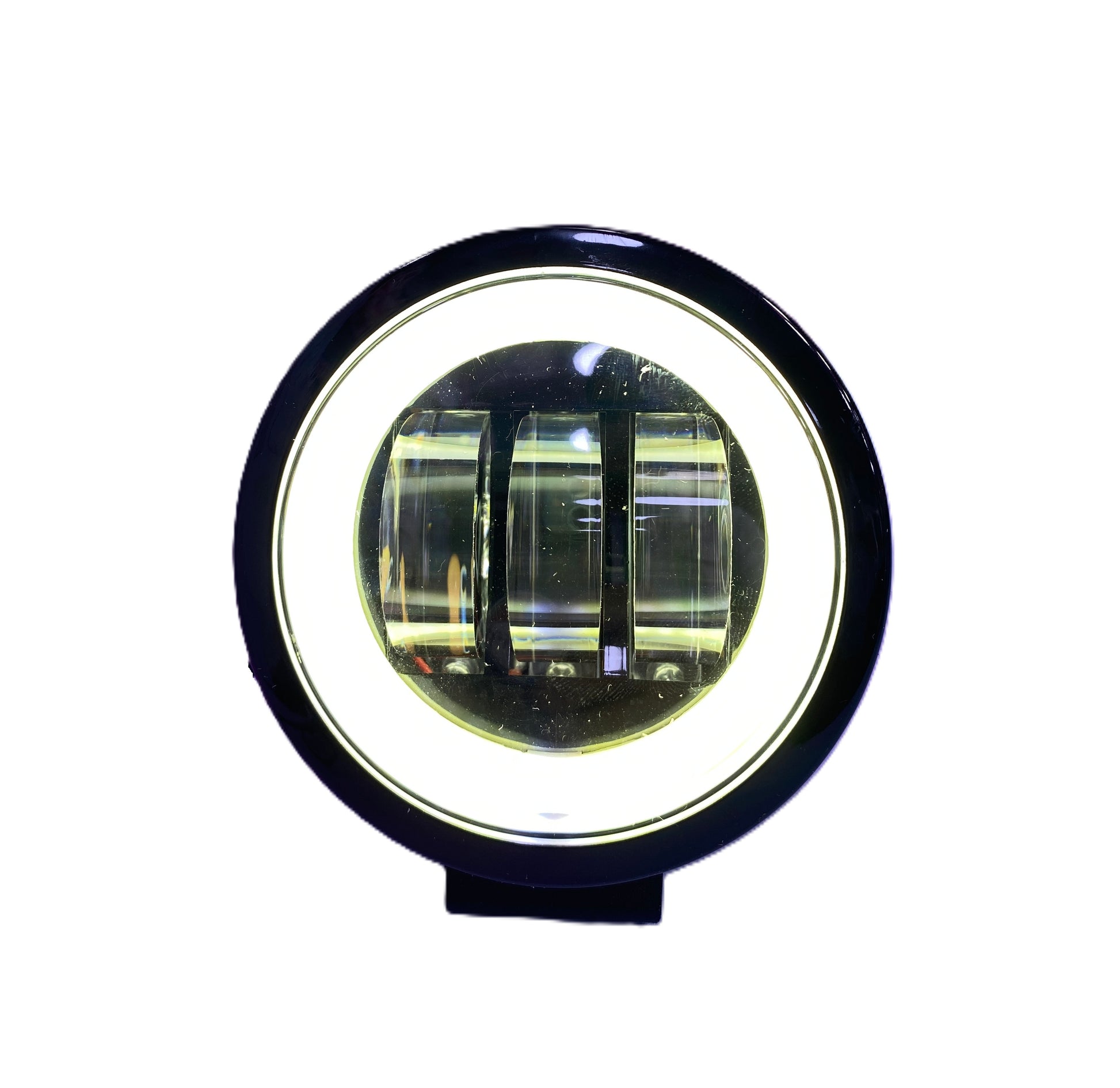 Exploradora circular de doble función para motocicleta, diseñada para ofrecer un haz de luz potente con dos modos de iluminación que mejoran la visibilidad en diferentes condiciones. Su diseño compacto y resistente permite una instalación sencilla en la mayoría de motos, manteniendo un aspecto moderno y funcional.