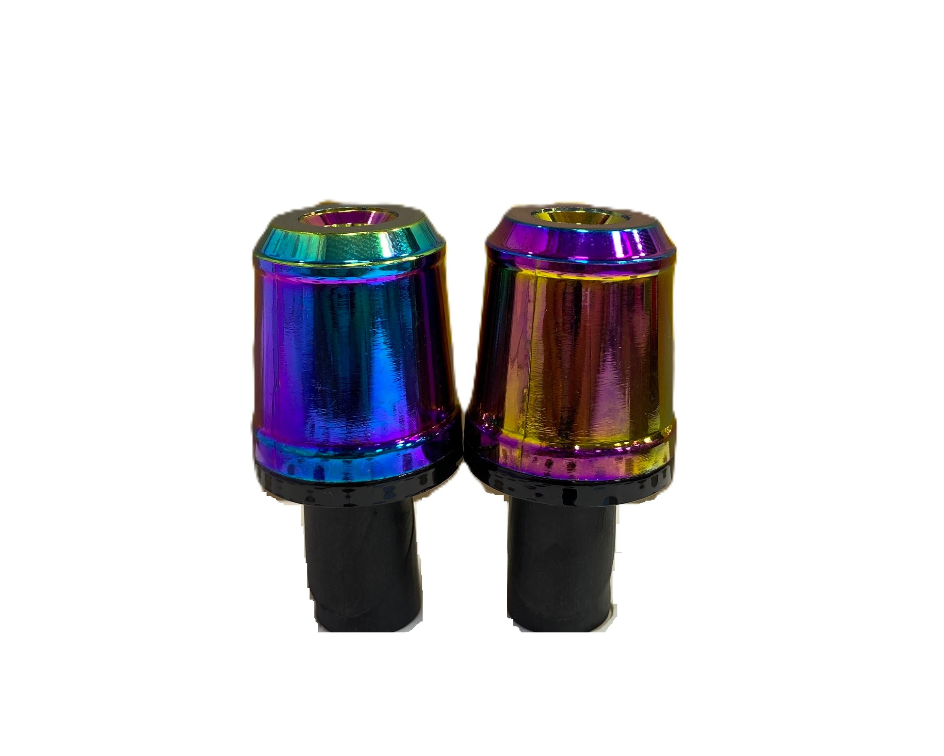 Pesas de manillar tornasol para motocicleta, diseñadas para reducir vibraciones y mejorar la estabilidad del manubrio mientras aportan un acabado estético llamativo. Su recubrimiento tornasol ofrece un efecto de color variable que aumenta el atractivo visual del vehículo.